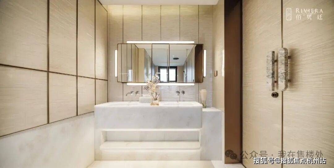 ,搭配奢华的双台盆、马桶间、浴缸与淋浴的“四件套”配置,尽显高端居住品质;
