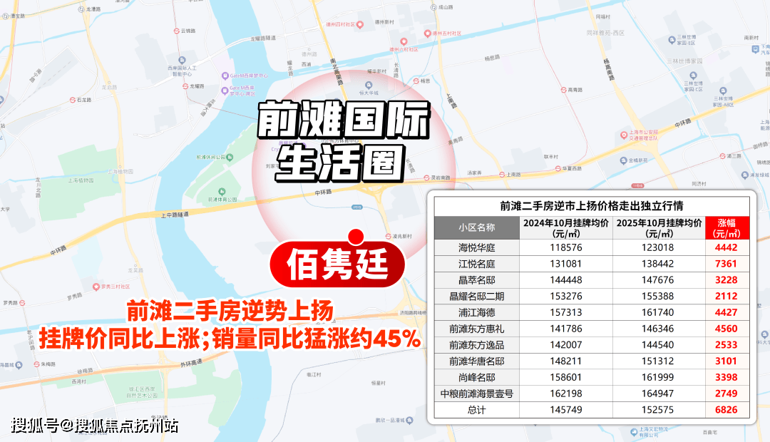 价格上,在约98%板块挂牌价同比下降的当下,前滩多数小区仍保持价格坚挺;销量上,今年1-10月二手房成交约230套,同比大涨约45.6%,印证板块吸引力。