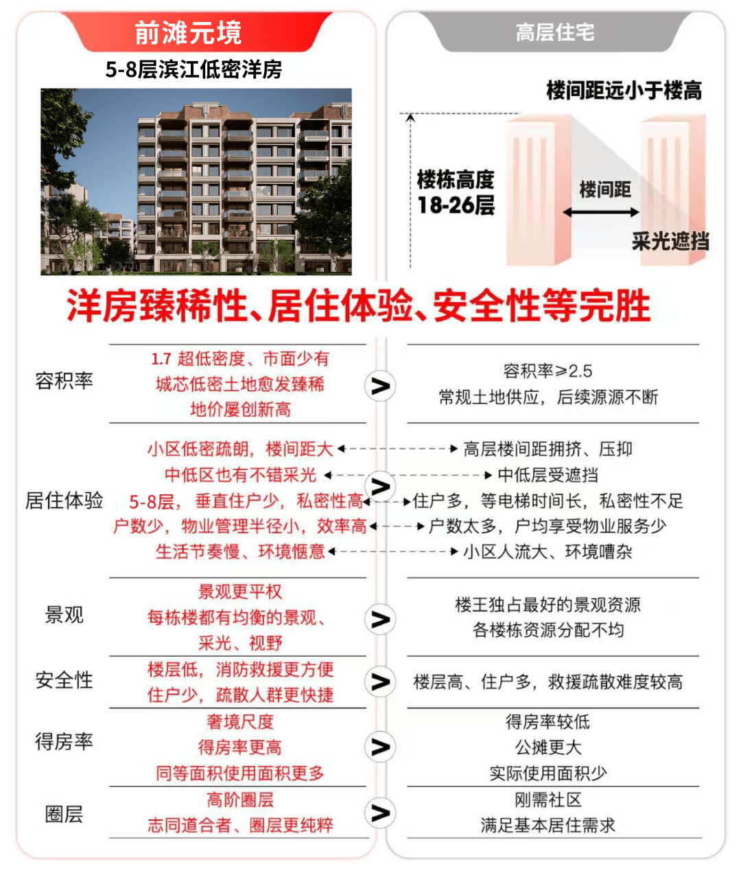 1、纯5-8层洋房,搭配约1.7容积率,正南正北户型格局,亲地性、舒适性等不是高层可以比的。