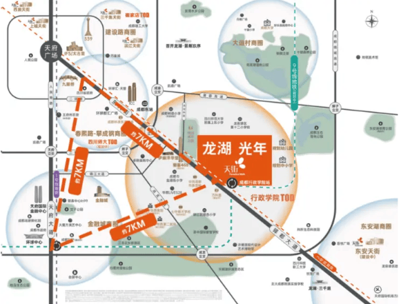 TOD模式典范:板块以地铁2号线行政学院站为核心,优先落地商业、公园等配套,再用3年时间快速兑现其他板块需10年发展的成熟度。项目是这一模式的核心载体,享受其带来的高效与确定性。