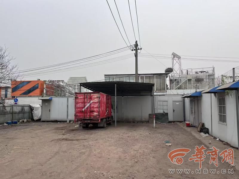 记者注意到,货车的电瓶都被拆了,无法驾驶。整个停车场和活动板房也没有任何标志和名称。