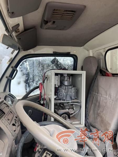 到达场地后,没有发现相关人员,现场只有一辆货车,驾驶室内有一台小型加油机。
