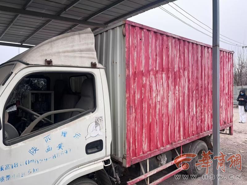1月23日上午,华商报大风新闻记者先到达未央宫街道辖区的一个村道,找到村道旁边的停车站,从停车场进去,往里面走,有活动板房,这个加油站还被活动板房遮挡着,在外面根本看不见。然而,这个所谓的加油站,其实就是一辆货车,货车无牌照,车厢被涂成了红了,车辆周围有明显的汽油味。货车的驾驶室的左侧没有玻璃,车门也能拉开,能看见里面的小型加油机和油枪,货车的上面还有遮雨棚。