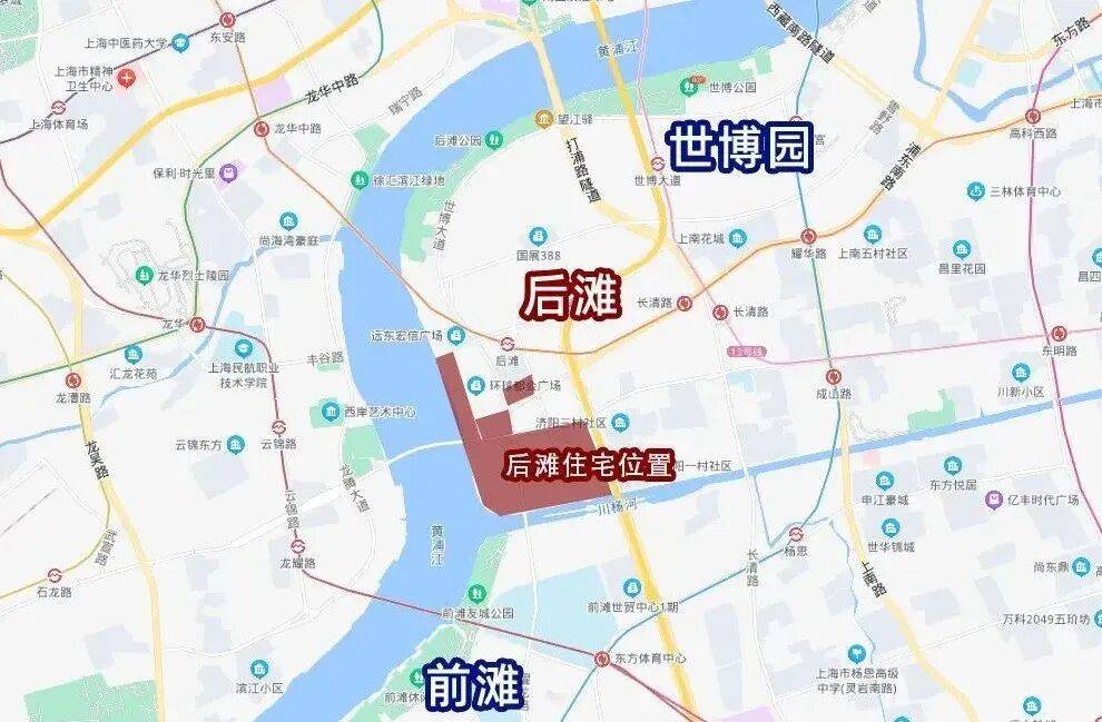 我们俗称的后滩,其实属于浦东世博板块,大致是指川杨河以北,后滩公园以南,东起南北高架,西至黄浦江,相比前滩更靠近内环。