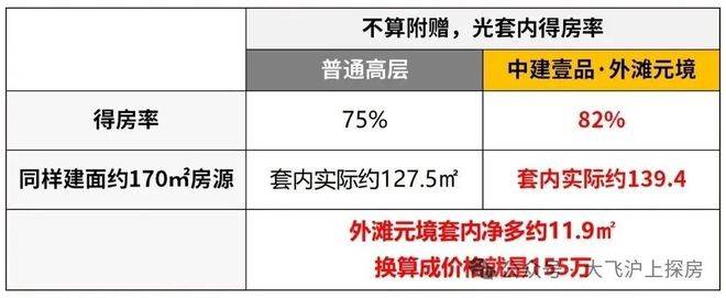 正常的新房,其套内的得房率最高也就是75%。而中建壹品·外滩元境的得房率足足有约82%。优势是巨大的: